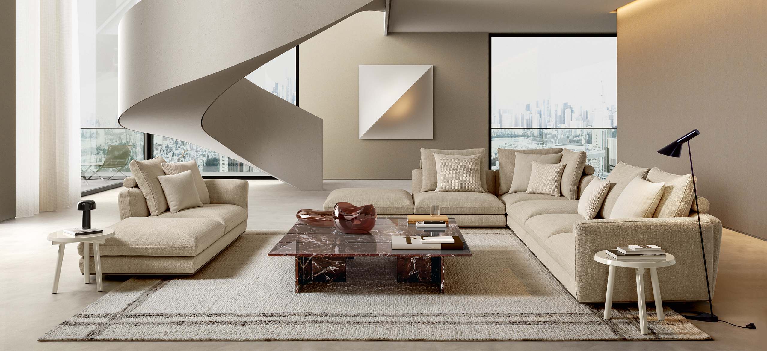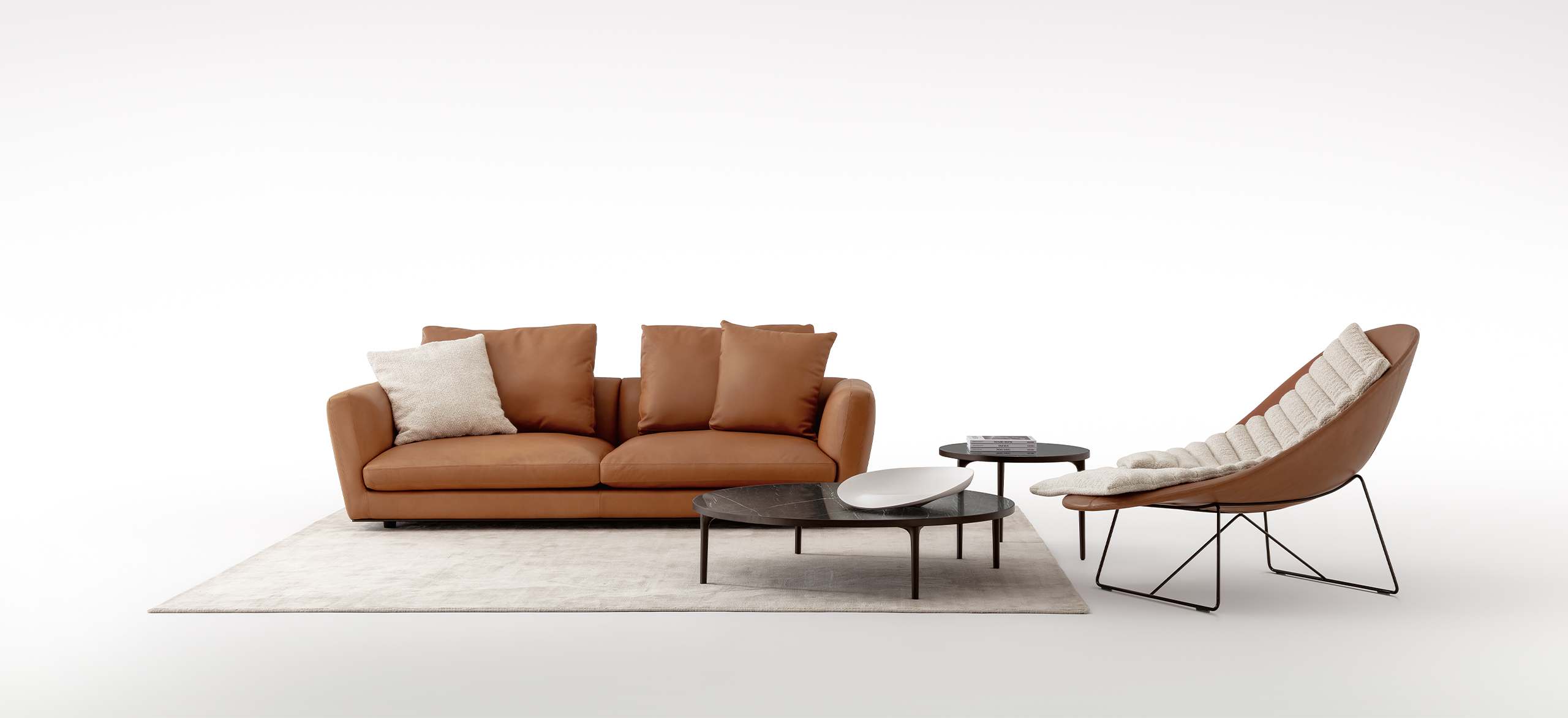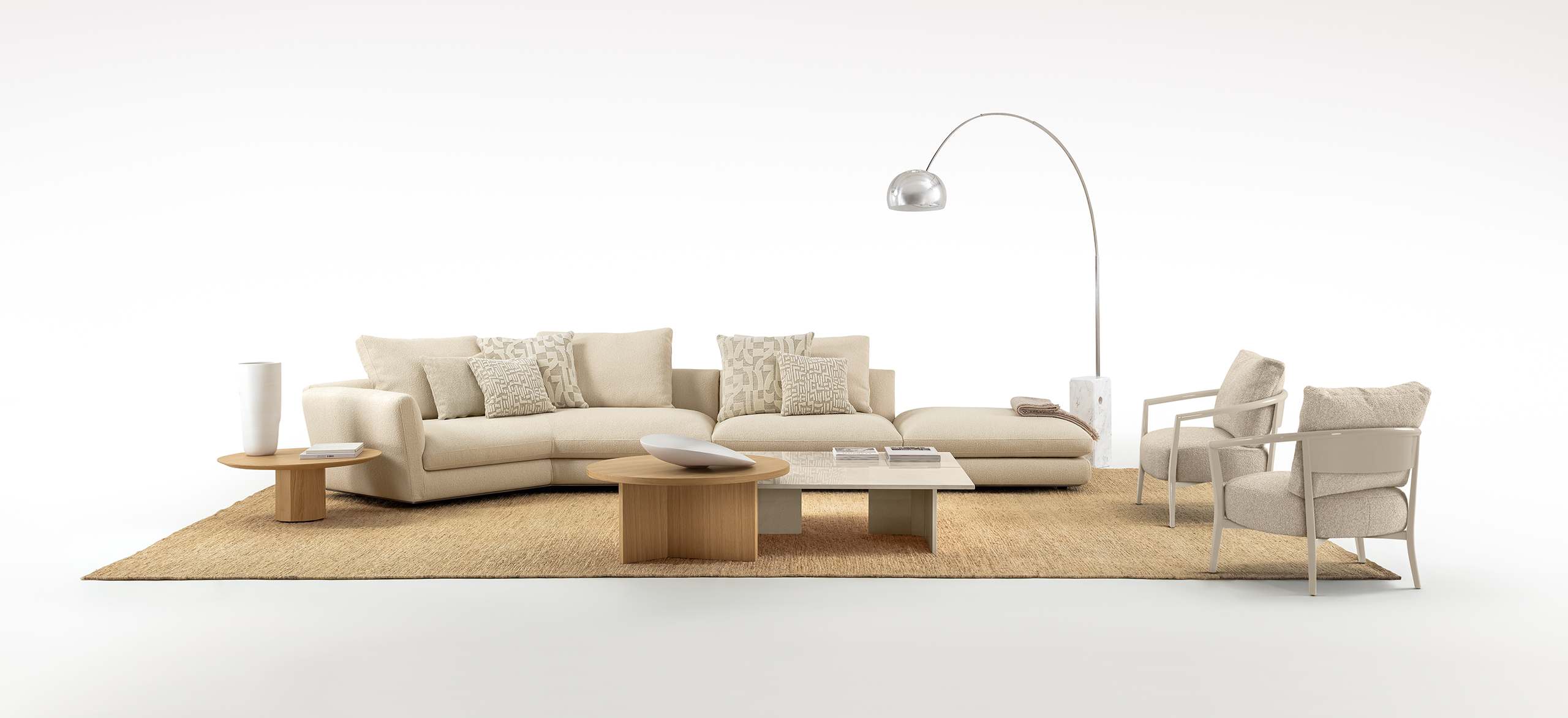The MILES collection was conceived as a tribute to the expressive freedom and timeless elegance of jazz. Its name recalls Miles Davis, an absolute icon of innovation and experimentation, translating his spirit into a fluid and refined design language. Soft, sinuous lines—never rigid—shape volumes that naturally adapt to space, evoking the harmonic improvisation that defines jazz music. Gentle curves, balanced proportions and carefully selected materials create a design that invites change and reinvention while maintaining coherence. MILES is a collection designed to offer authentic, lasting comfort, where every detail contributes to an atmosphere of spontaneous elegance and timeless relaxation.