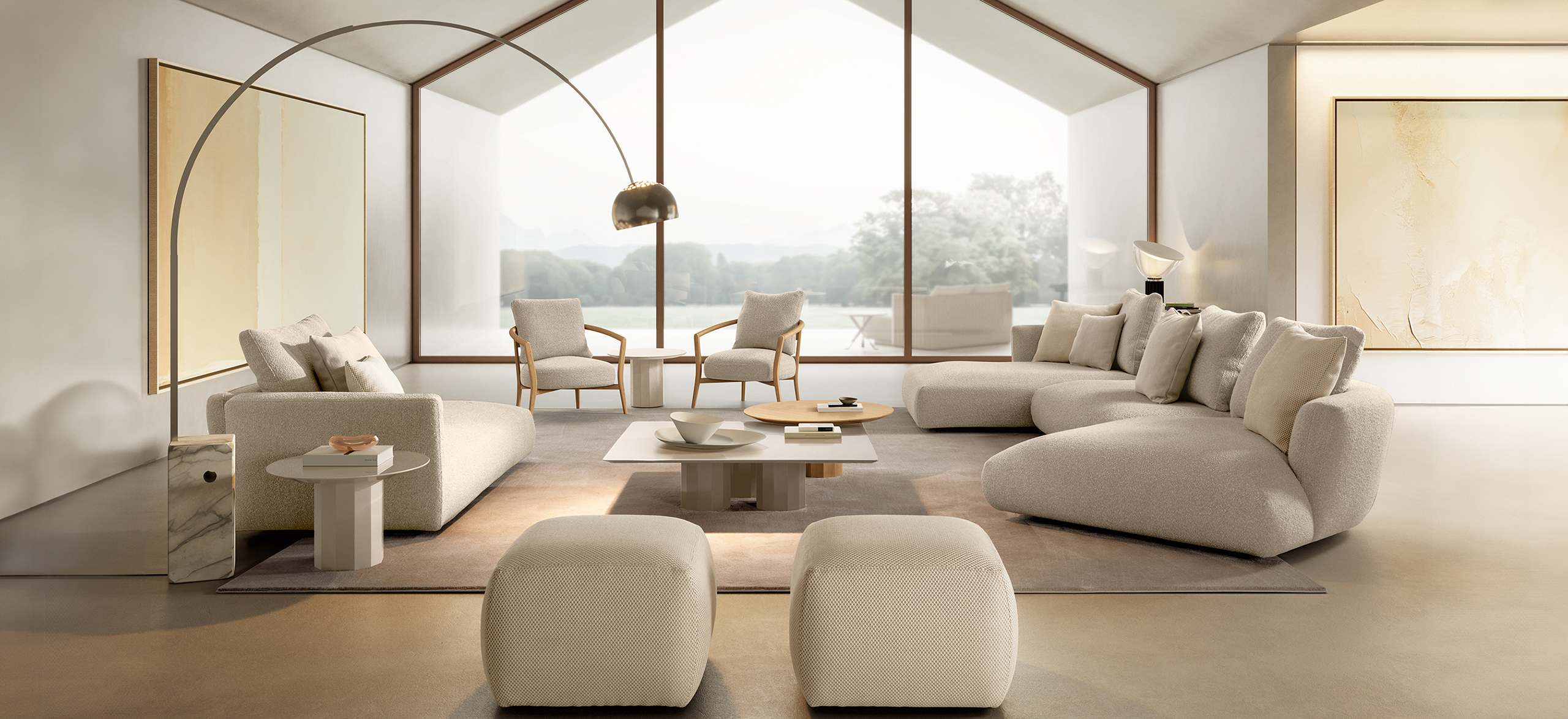 The OTIS collection is conceived as an expression of essential, contemporary comfort, where softness and character come together in a balanced design. The name evokes a sense of reassuring solidity and discreet presence, translated into rounded, welcoming forms that naturally interact with space. Fully upholstered and available in refined fabrics and leathers, OTIS stands out for its rich materiality and a color palette that enhances its volume. A versatile and sophisticated collection that reinterprets the pouf as an elegant, functional and distinctly contemporary design element.