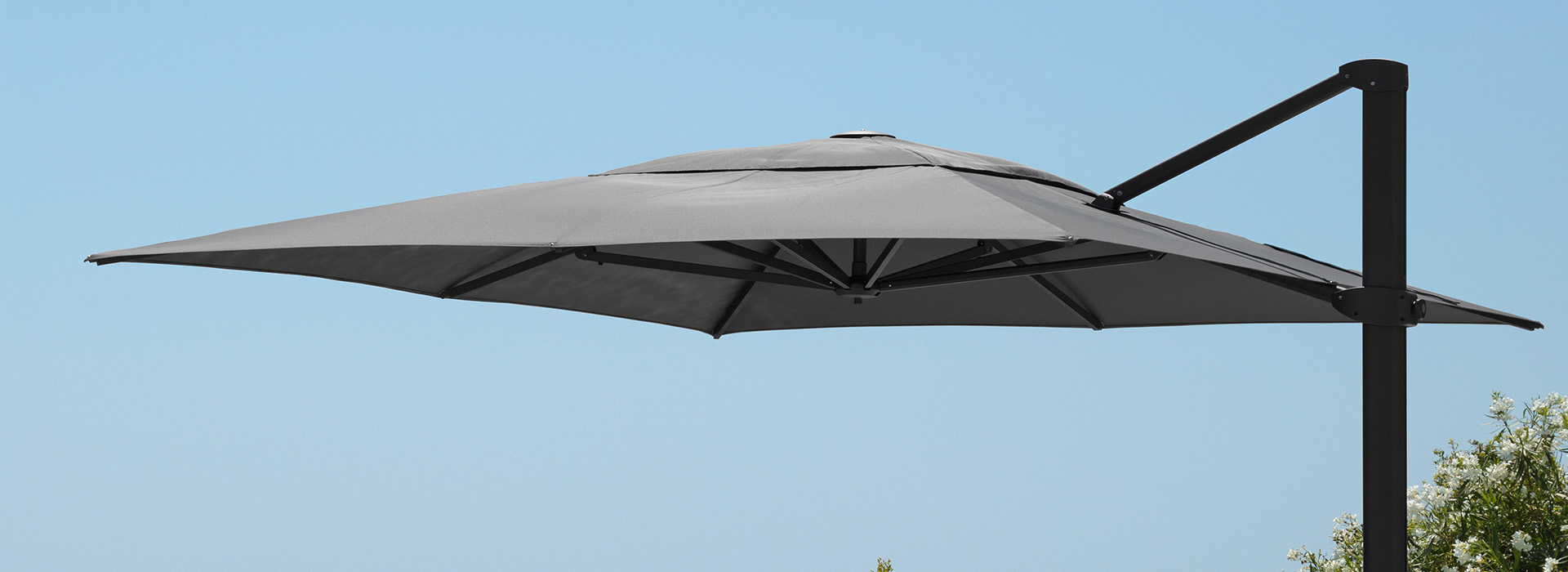 Before closing the umbrella, make sure that the fabric is completely dry. During periods of non-use, the umbrella should be stored in a dry place and protected with its cover. Avoid prolonged contact with greasy substances and/or dyes that may be absorbed by the coating material and cause permanent stains, as well as damage the yarn structure. Do not use solvents. Use water and non-abrasive, neutral-pH, colourless liquid detergents. If necessary, allow the detergent to act for a few minutes. Rinse thoroughly with water at a temperature not exceeding 30°C.