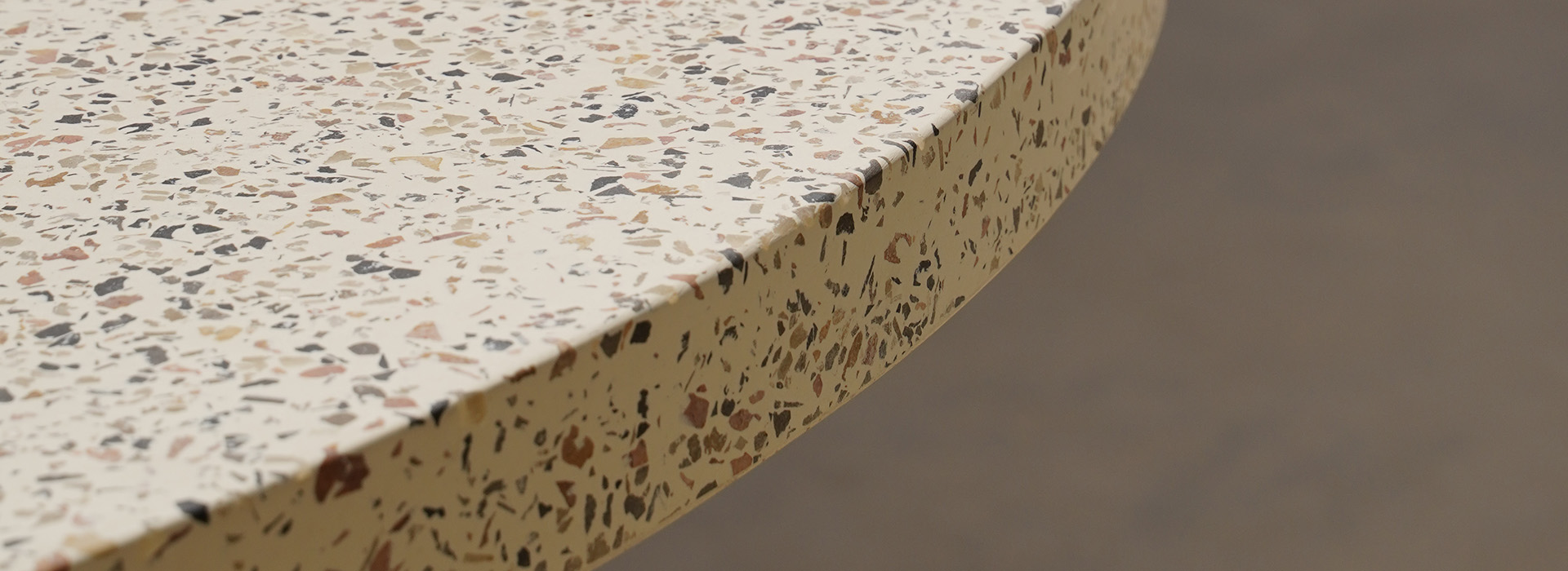 Terrazzo or Graniglia is a material created by recycling coloured cement waste and marble processing. It is obtained from a mixture of strongly binding cements, coloured with natural oxides, and splinters recovered from the crushing of various types of marble. The Terrazzo surface is then polished to obtain a finish that is pleasant to touch and to enhance the beauty of the aggregates.