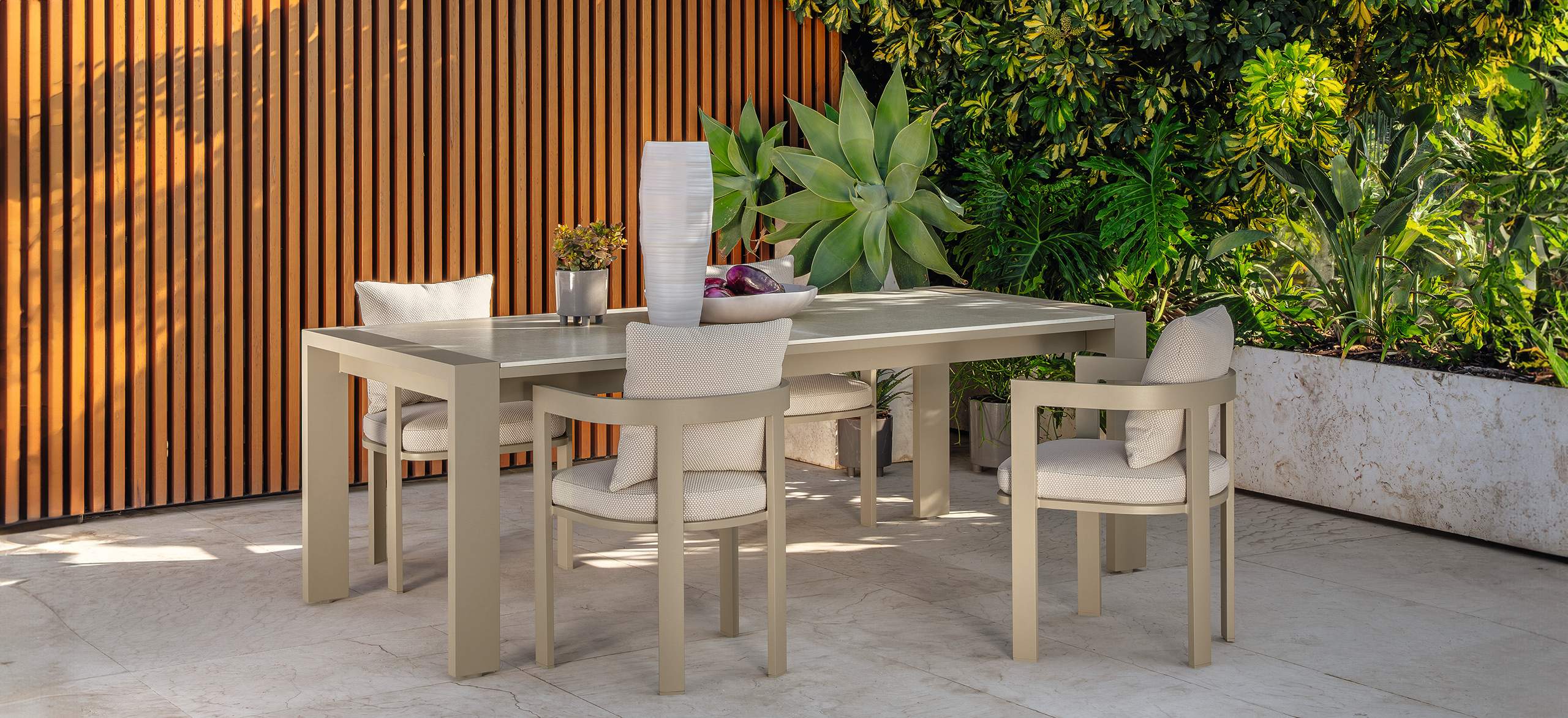 Argo, a mythological name, that is inspired by the mythological wooden boat that sailed around the Greek islands, in search of the legendary golden fleece. Argo aluminum is an outdoor furnishing system that is a perfect match of a great aesthetic experimentation and extraordinary versatility in terms of personalization. Argo is a project characterized by a contemporary aesthetic.