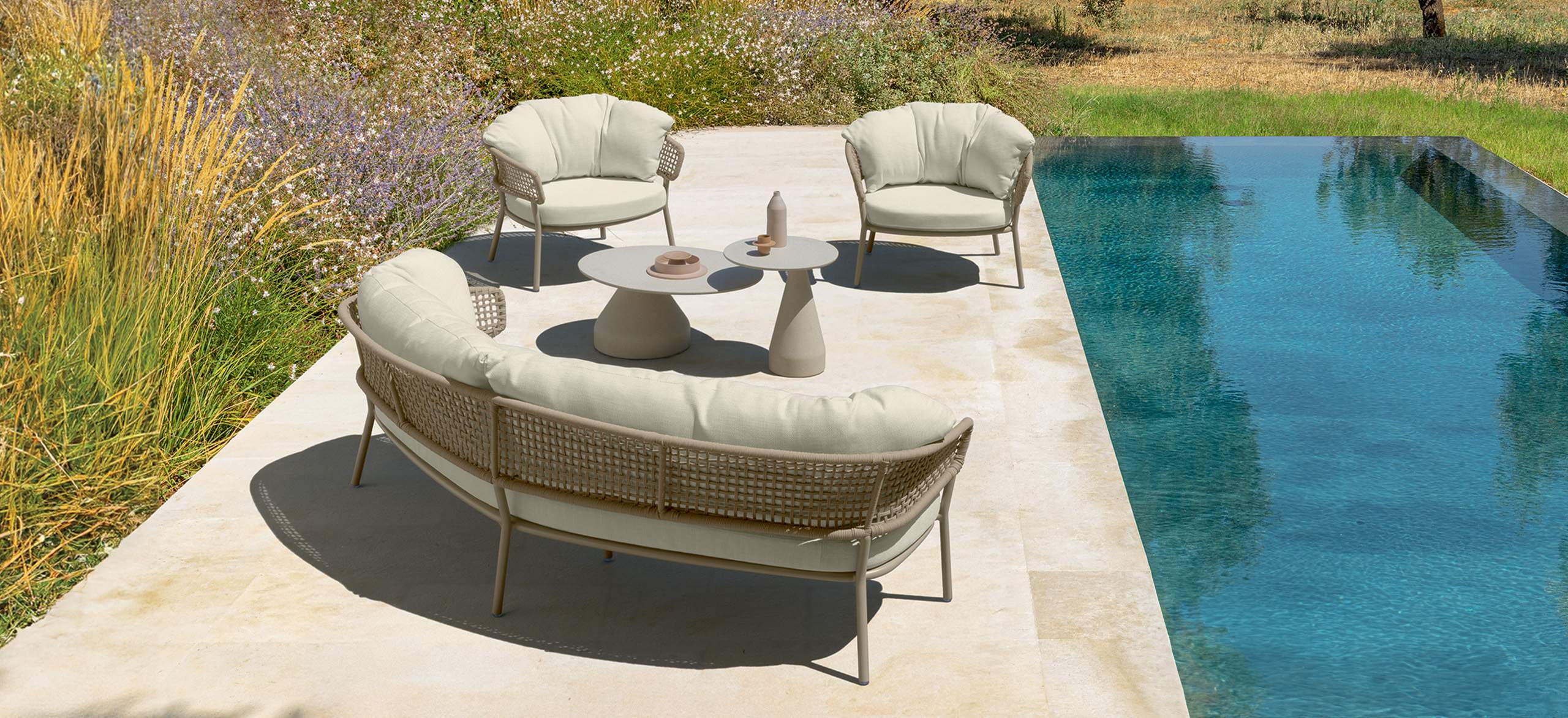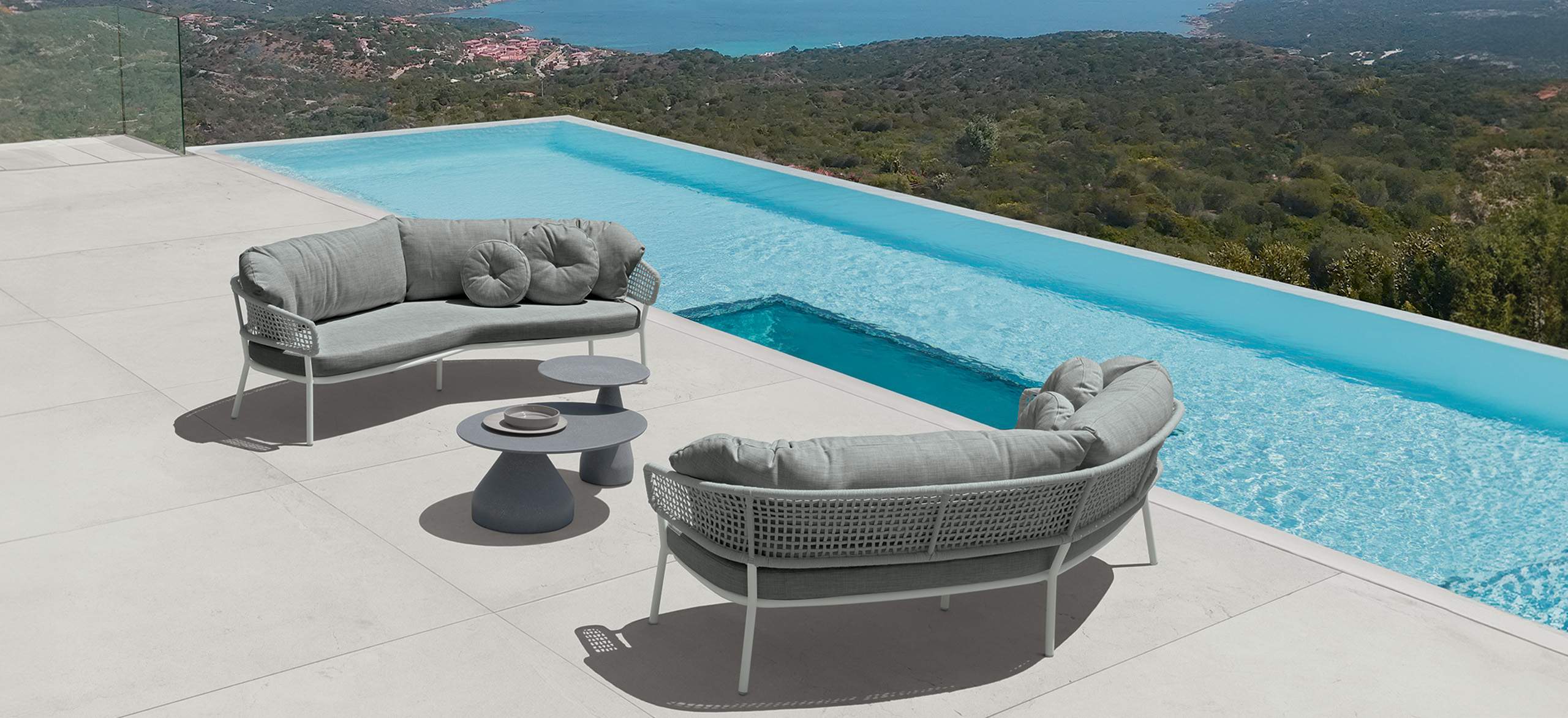 The elegance and the sinuous forms of the Moon Teak combined to the practicality of the aluminum frames give life to the Moon Alu. Clean lines are enhanced by comfy paddings in different shades of grey that are perfectly adaptable to your home furniture. Moon Alu collection is simultaneously warm and appealing, stylish and tempting. A range of armchairs, sofas and tables with a practical functionality combined to a timeless elegance.
