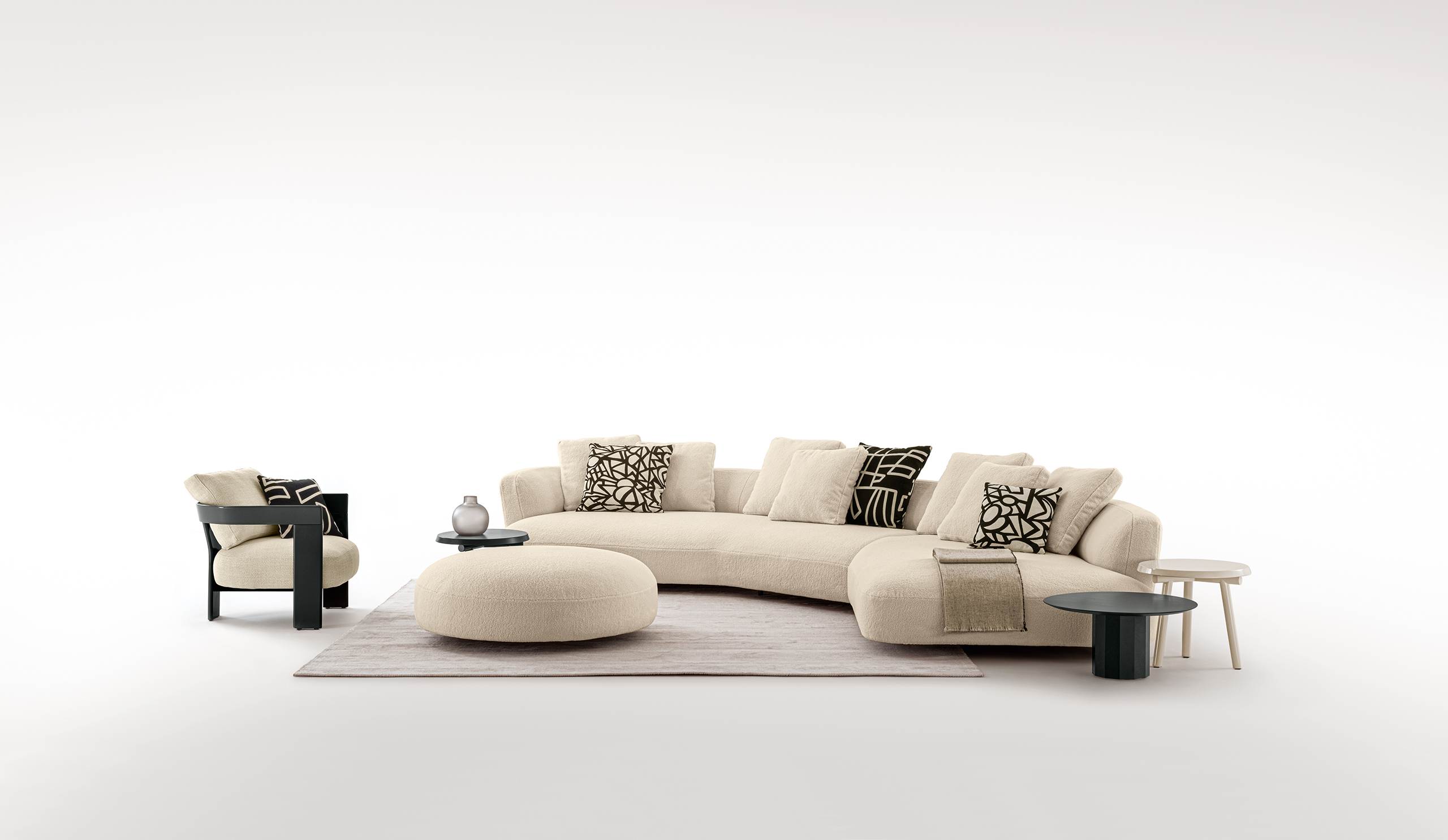 The Alma 240 cm sofa perfectly balances generous comfort with an elegant visual presence. Its wide proportions welcome effortlessly, offering a deep and continuous seat that encourages conviviality and everyday relaxation. Soft, rounded lines combined with tactile, textured upholstery convey an immediate sense of warmth and well-being. Designed for spacious living areas, Alma 240 cm stands out for its informal elegance, enhancing interiors without ever overwhelming them.