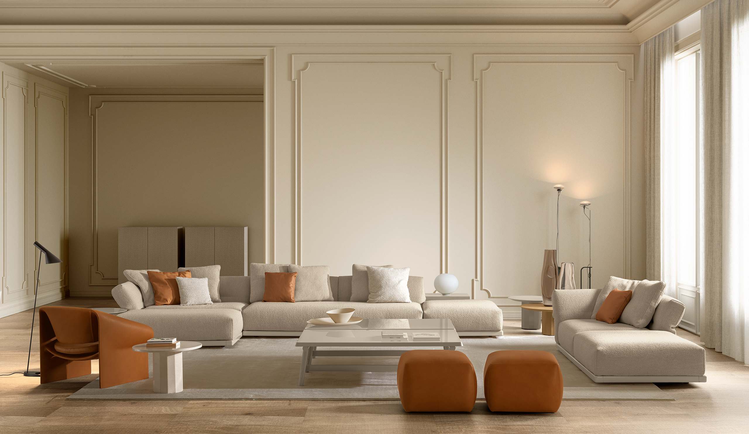 The ELTON pouf completes the collection with a versatile and functional element designed to extend the sofa’s usability. Used as an additional seat, an informal surface or a natural extension of the composition, the pouf echoes the full shapes and attention to detail that define the entire line. Its discreet presence contributes to a harmonious and relaxed environment, offering immediate comfort and design flexibility in perfect continuity with the ELTON style.