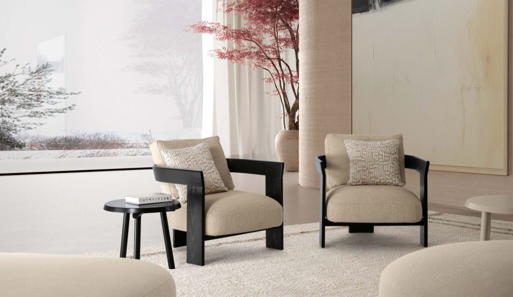The FREDDIE armchair, designed for dining and living spaces, naturally challenges formal conventions, much like the iconic frontman of the legendary English band it is named after. Its design plays with proportions and contrasts, moving effortlessly between different styles while expressing the multiple identities of Talenti Home. Bold yet welcoming lines define a comfortable and versatile seat, able to adapt to various settings without losing character. Available with fabric or leather upholstery, FREDDIE is an armchair with a strong personality, created for those who enjoy elegant boldness.