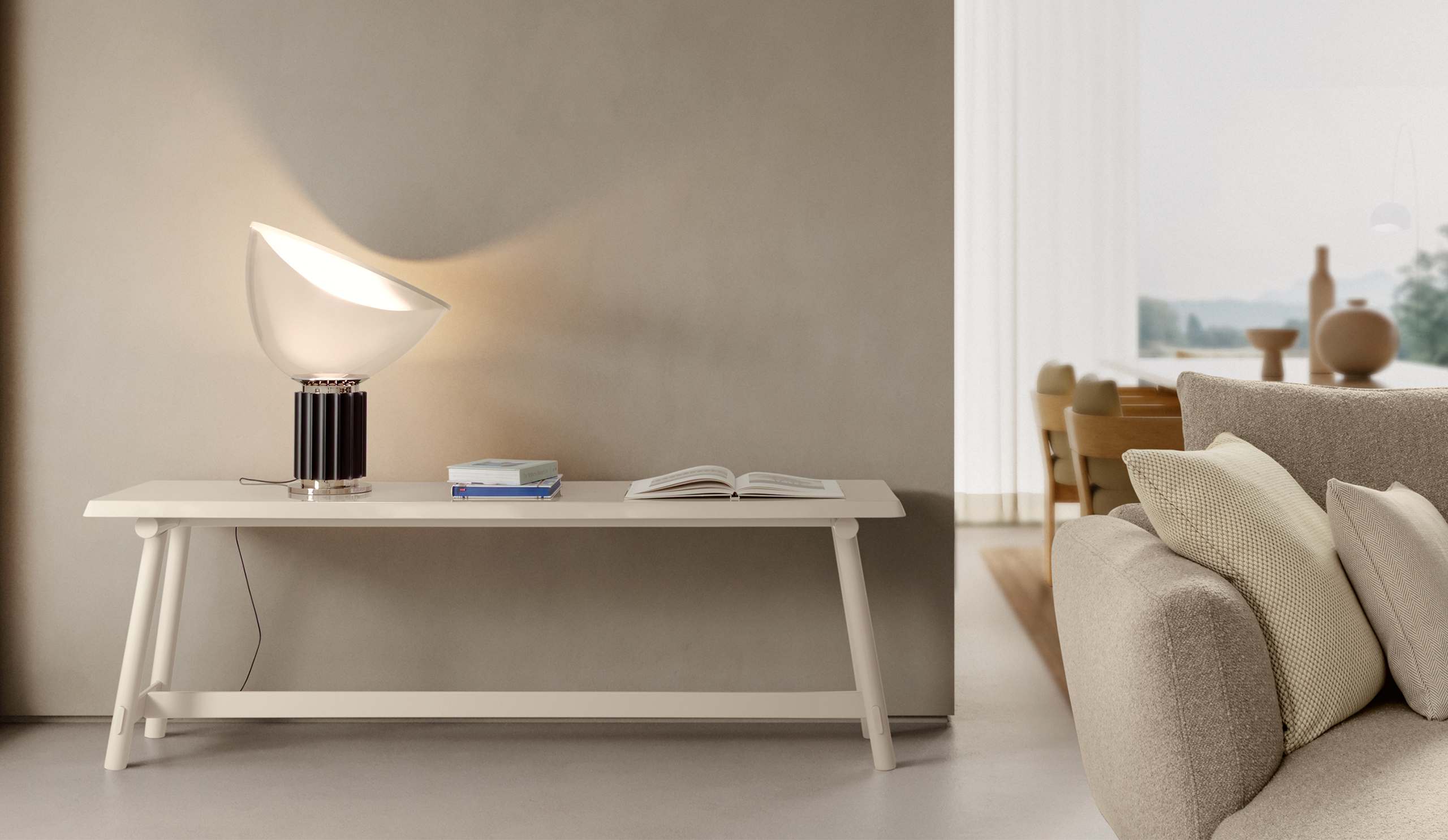 The HYDRA console features a bold, architectural design where formal balance and structural solidity coexist harmoniously. The top, available in marble, lacquered or veneered finishes, highlights material quality as a central design element. The legs, made in lacquered or veneered finishes, provide visual continuity and stability, reinforcing the console’s rigorous character. Thermoplastic feet ensure a secure and discreet floor support. With its range of marble, lacquered and veneered finishes, HYDRA naturally complements contemporary entrance and transitional spaces with a confident yet measured presence.