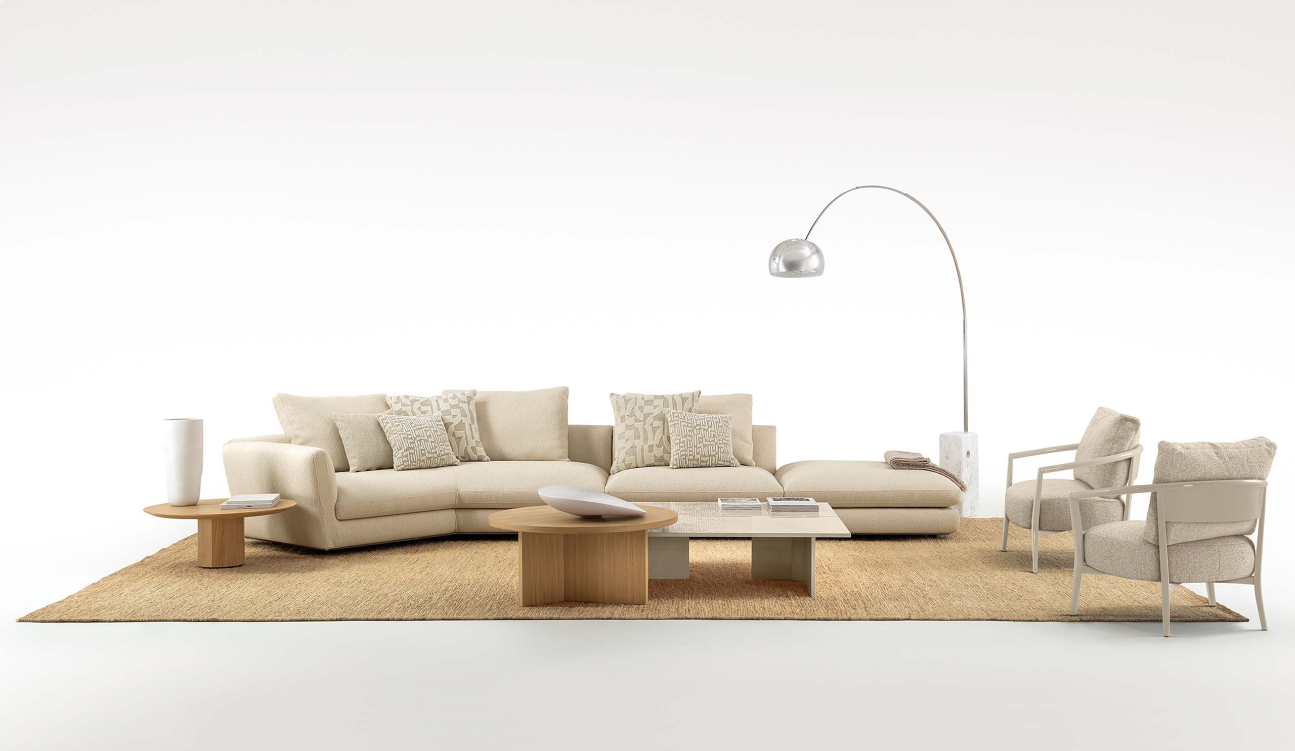 The MILES pouf completes the collection with a functional and versatile element that expands the sofa’s possibilities. Used as an additional seat, an informal surface or a natural extension of the composition, it reflects the same soft shapes and aesthetic balance that define the entire line. Its discreet presence enhances a harmonious and relaxed living environment, offering immediate comfort and design flexibility.