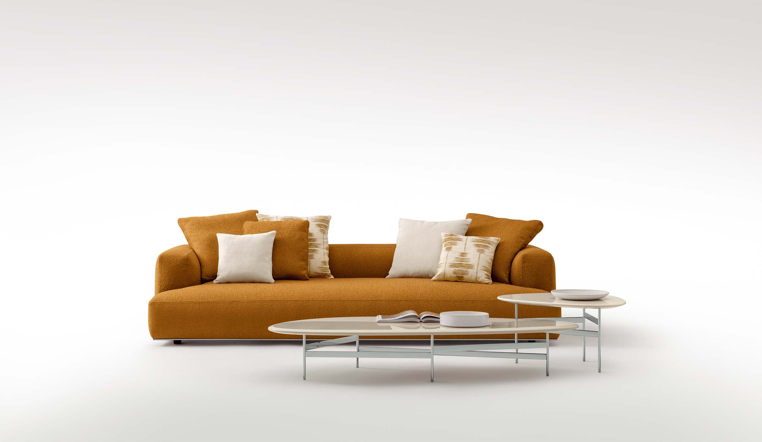 Compact yet authoritative, the PACO 240 cm sofa preserves the identity of the collection in a more contained version. Harmonious proportions and a comfortable seat make it suitable for a variety of residential settings, offering an authentic relaxation experience. Clean lines and bold volumes interact with soft, welcoming materials to create a versatile and elegant sofa.