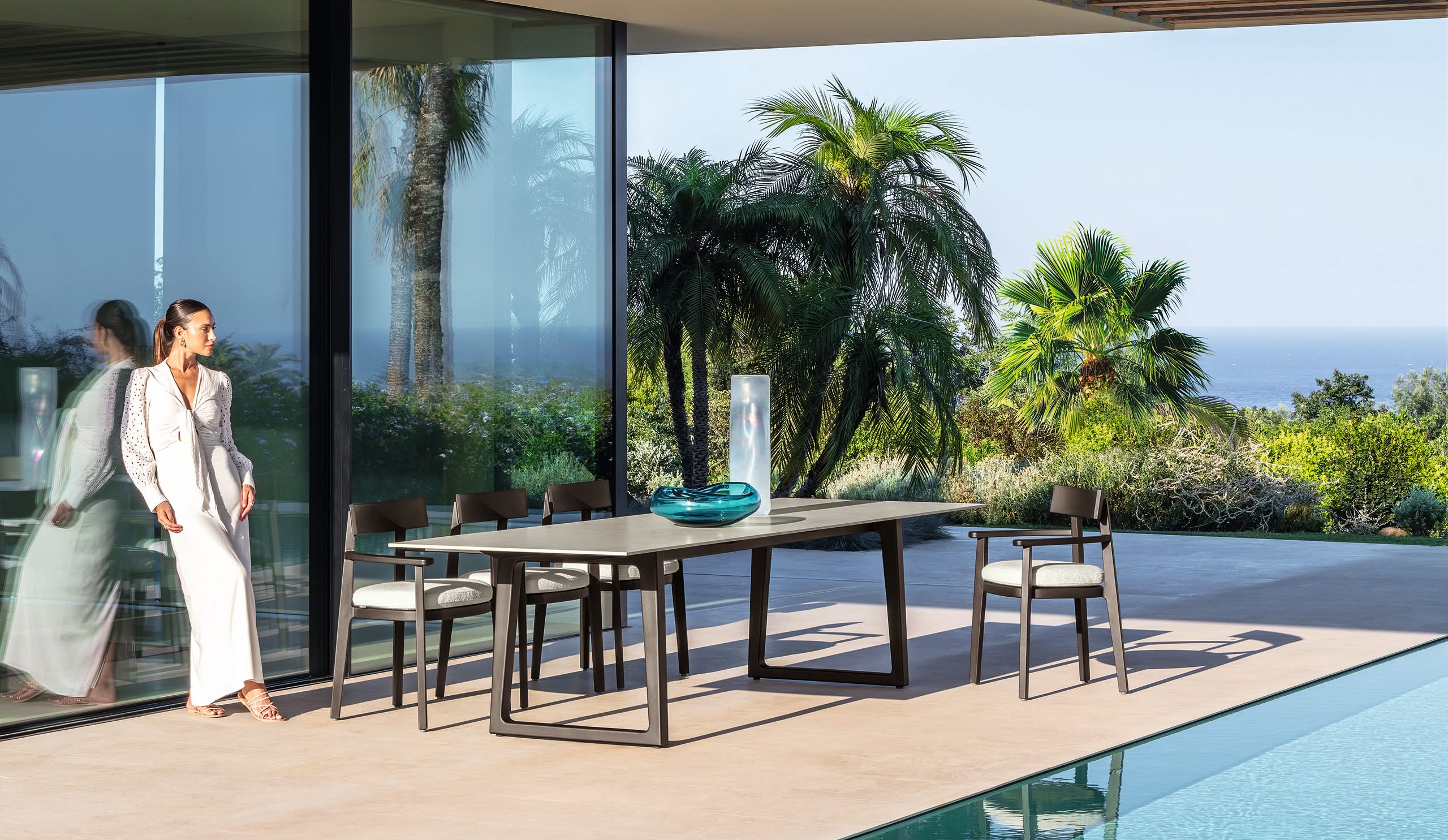 The Ever 230×100 Dining Table expresses simple and enduring elegance. The synergy between minimal design and the materiality of aluminium gives outdoor spaces an authentic and timeless character. The strength of the materials meets the lightness of the forms, creating a piece that brings future-forward style and harmony to outdoor living.